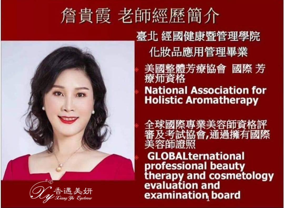 詹老師從事美業20幾年,曾在大陸培訓美業精油及理療專業, 回台後將紋繡與精油理療結合,進而成立香遇美妍, 想幫助廣大亞健康人群做酸痛管理的同時,也想讓注重形象的人都能做眉毛管理, 以老師的經驗及美感,收費很平價,因此是公認CP值最高的美學店。(大推)